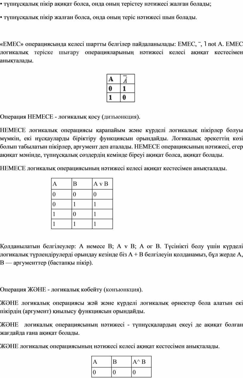 10.2.2.1 логикалық операцияларды қолдану (дизъюнкция, конъюнкция, инверсия) |