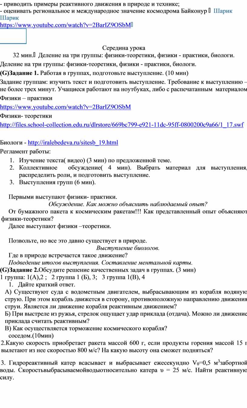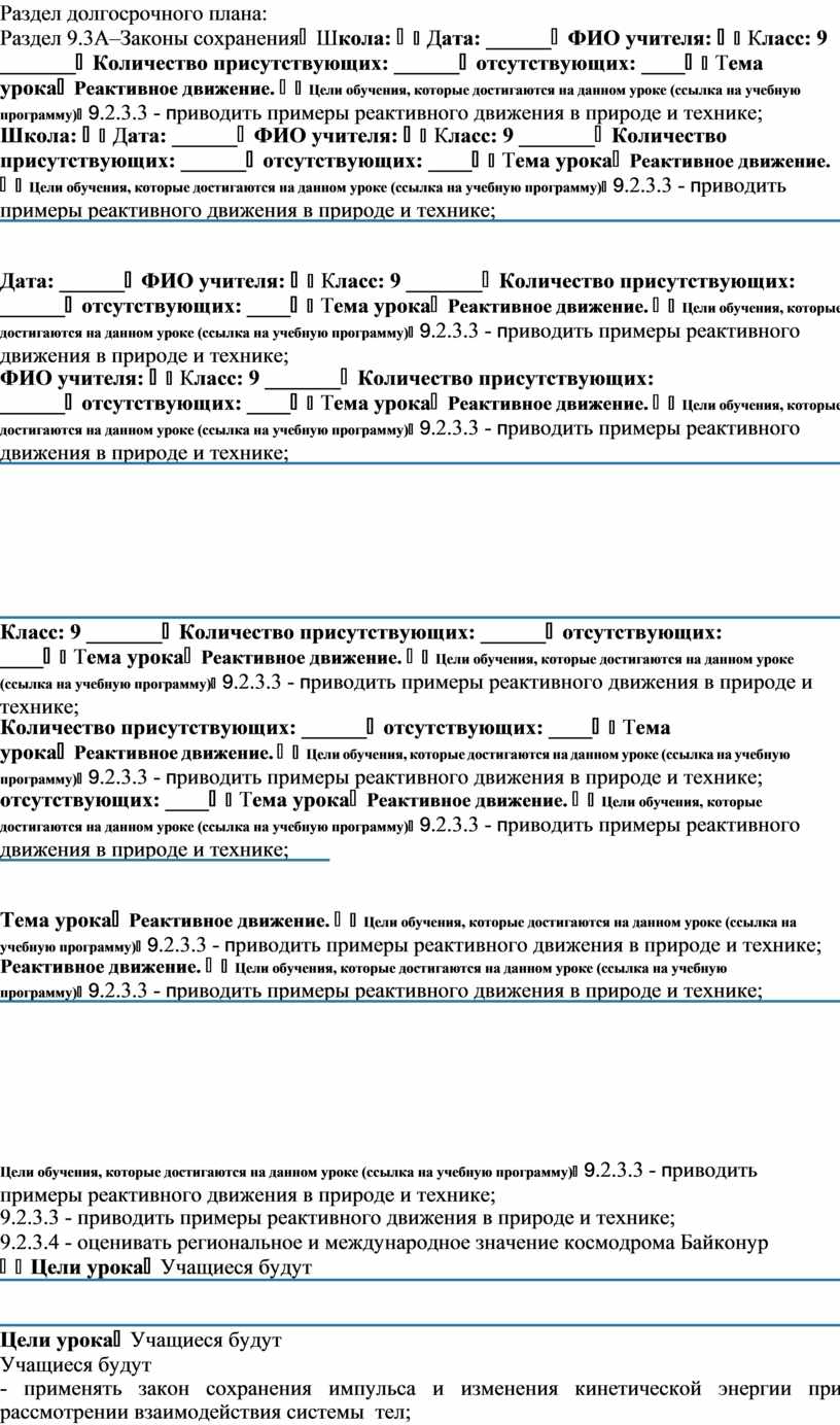 9.2.3.3 - приводить примеры реактивного движения в природе и технике; 9.2.3.4 - оценивать региональное и международное значение космодрома Байконур