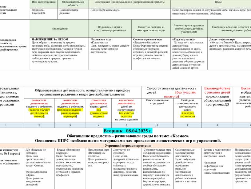 2 неделя месяца: 07.04.2025 - 11.04.2025 г. ТЕМА НЕДЕЛИ: «Космические просторы»