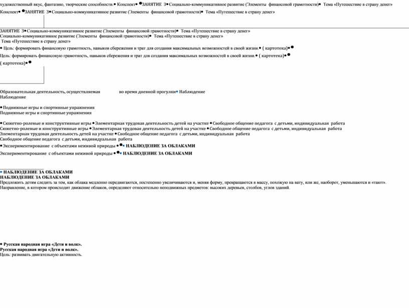 Социально-коммуникативное развитие (Элементы финансовой грамотности) |