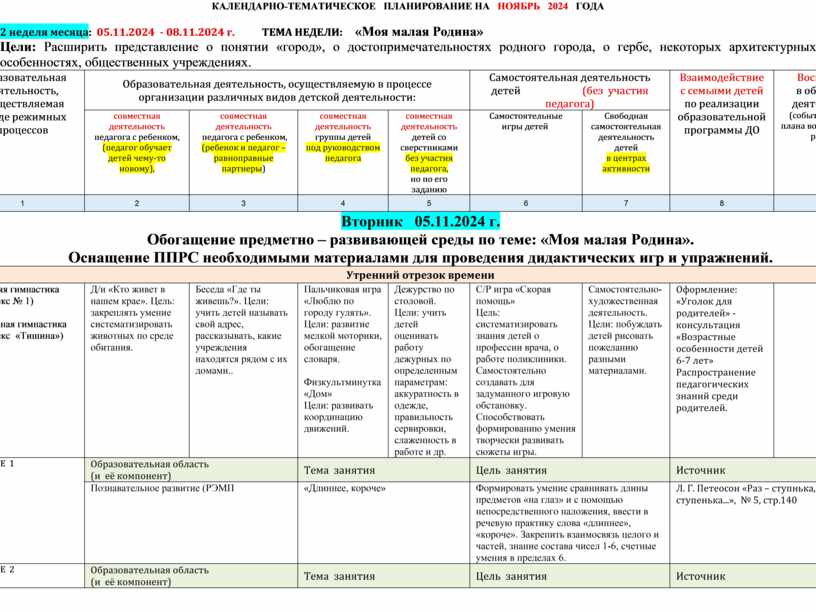 2 неделя месяца: 05.11.2024 - 08.11.2024 г. ТЕМА НЕДЕЛИ: «Моя малая Родина»