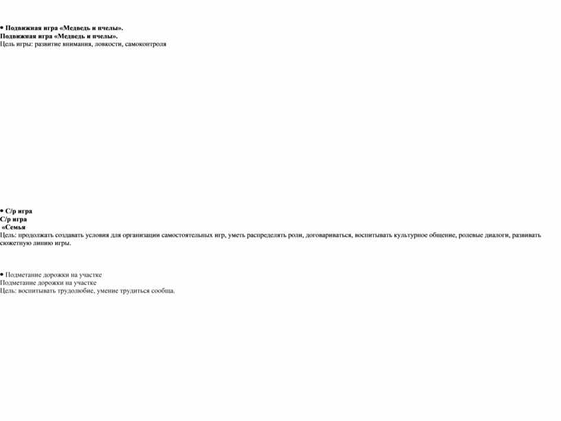 Сбор мусора на участке. Цели: добиваться выполнения задания общими усилиями; воспитывать взаимопомощь.