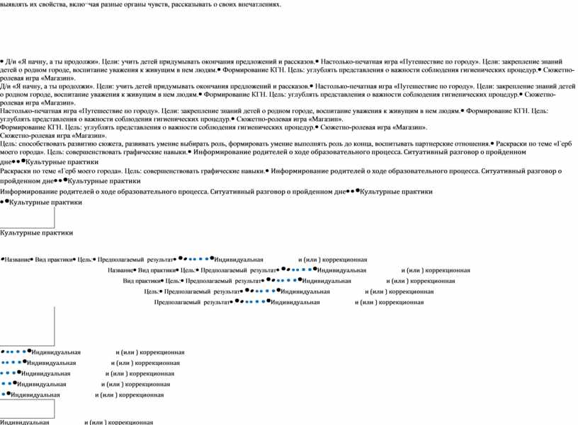 Индивидуальная и (или ) коррекционная работа по бразовательным областям |