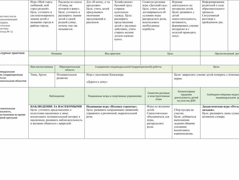 Образовательная деятельность после прогулки и перед сном |