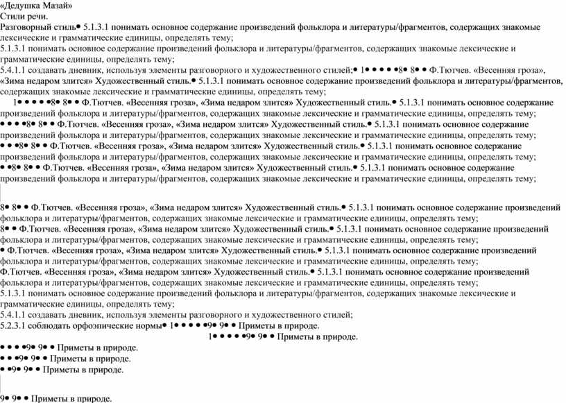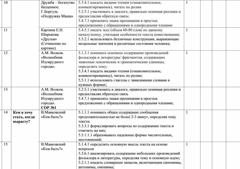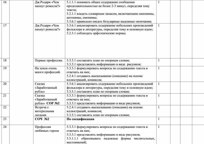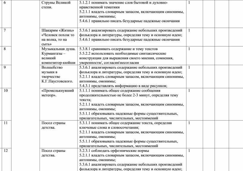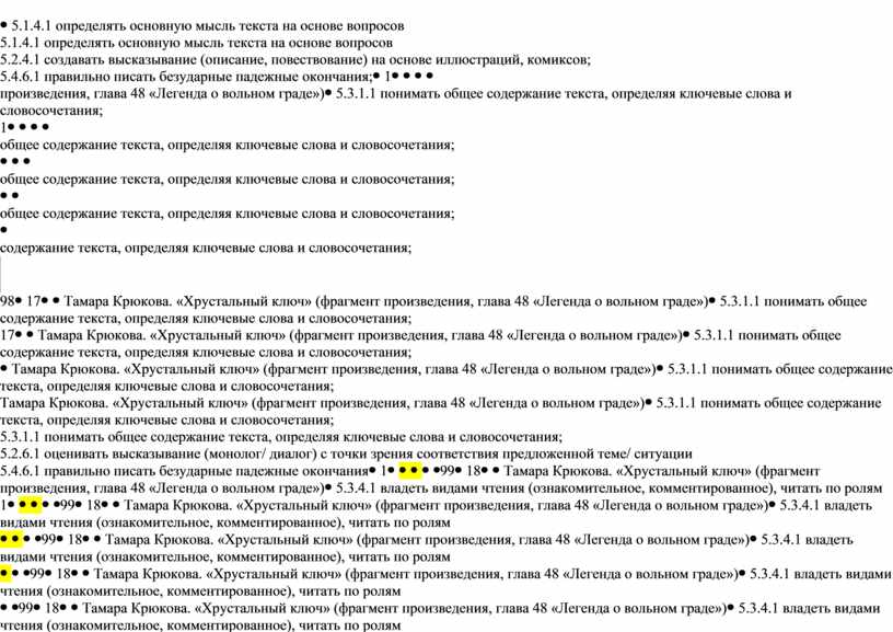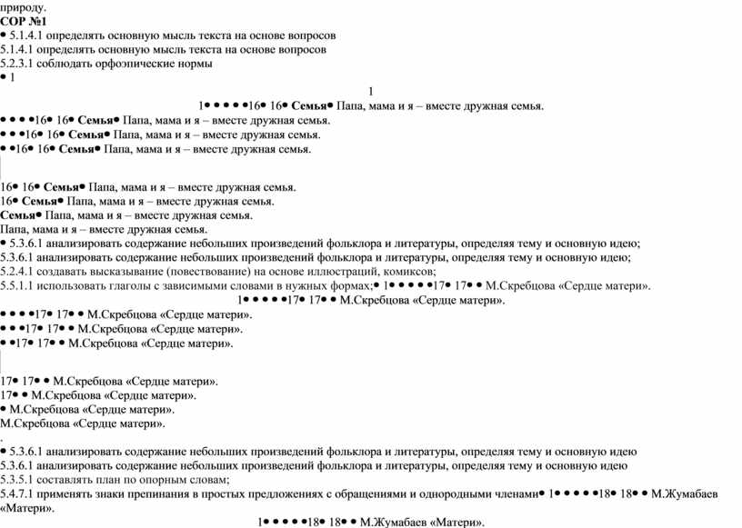 5.1.4.1 определять основную мысль текста на основе вопросов 5.2.3.1 соблюдать орфоэпические нормы