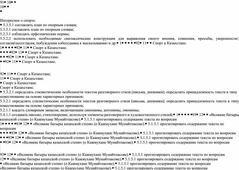 5.3.5.1 составлять план по опорным словам; 5.2.3.1 соблюдать орфоэпические нормы; 5.5.2.2 использовать необходимые синтаксические конструкции для выражения своего мнения, сомнения, просьбы, уверенности/, согласия\несогласия, побуждения собеседника к высказыванию и др. |