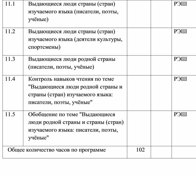 Раздел 11 Выдающиеся люди родной страны и страны (стран) изучаемого языка: писатели, поэты, учёные (5 ч)