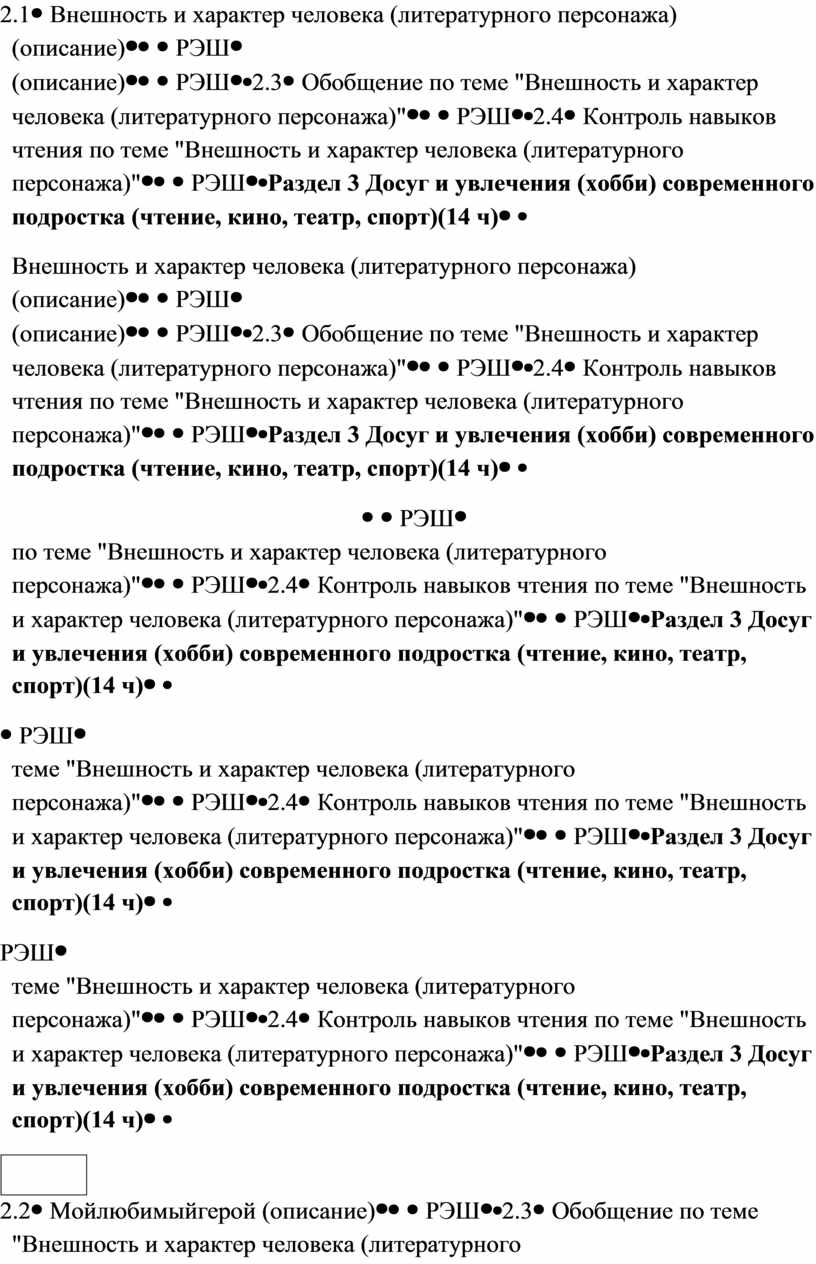 Раздел 2 Внешность и характер человека (литературного персонажа) (4ч)