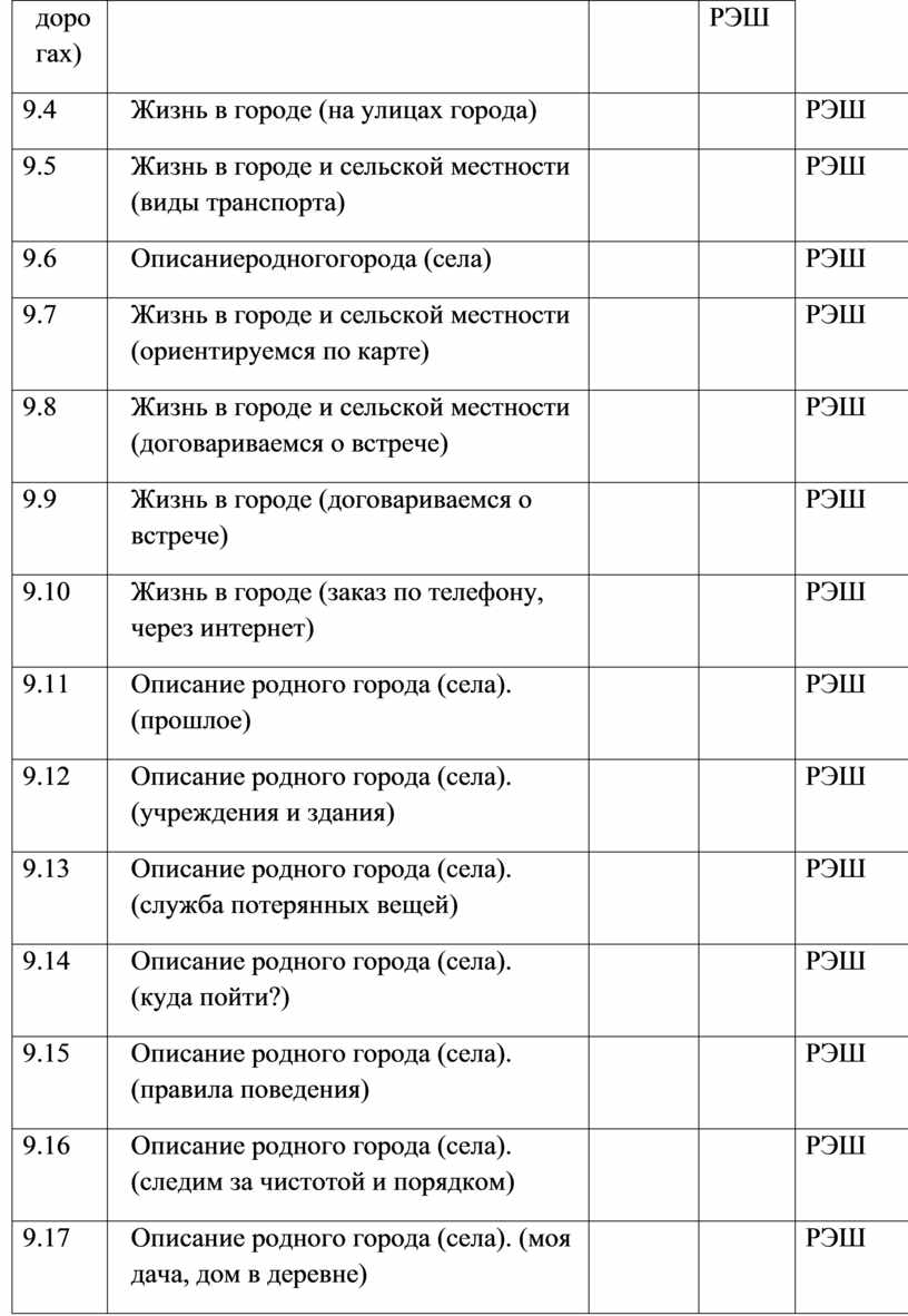 Раздел 9 Жизнь в городе и сельской местности. Описание родного города (села). Транспорт (19 ч) |