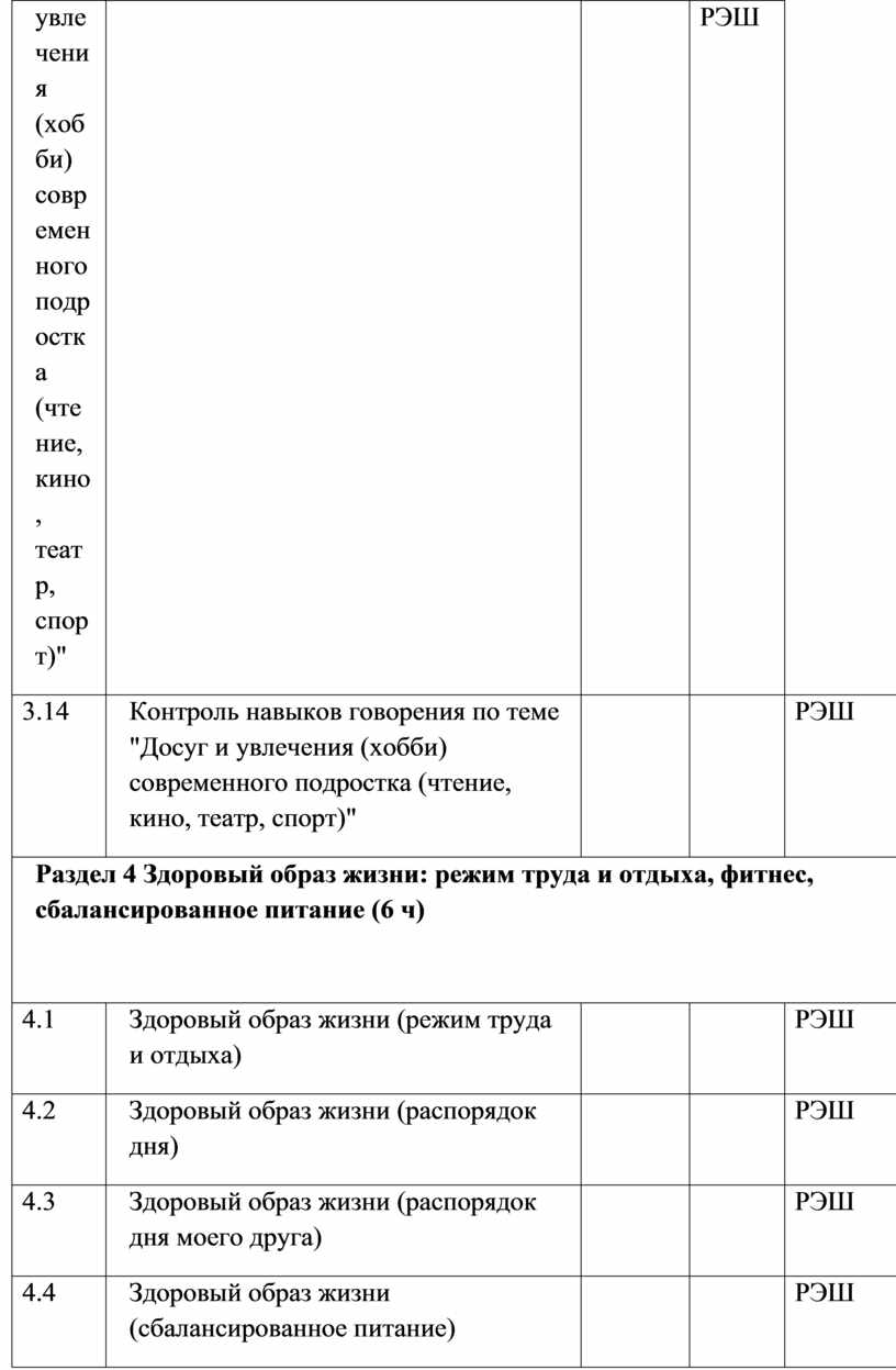 Раздел 3 Досуг и увлечения (хобби) современного подростка (чтение, кино, театр, спорт)(14 ч) |