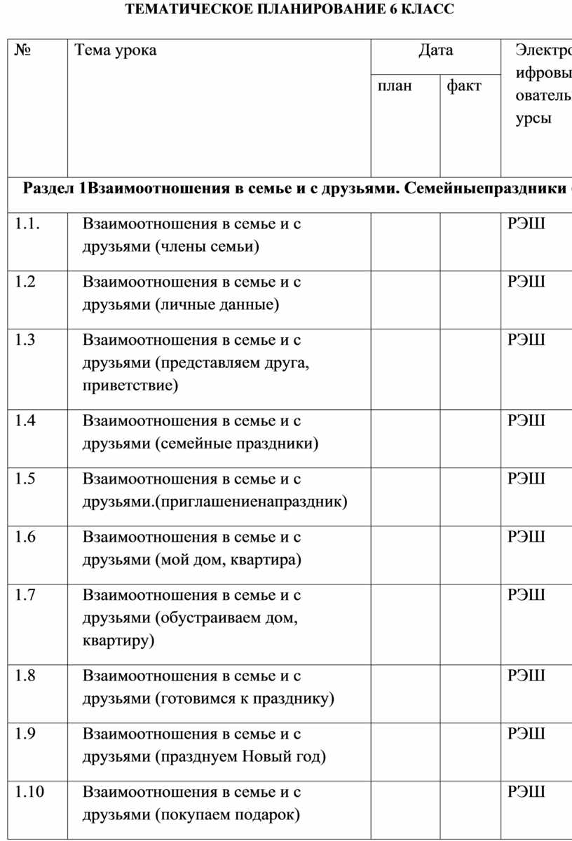 ТЕМАТИЧЕСКОЕ ПЛАНИРОВАНИЕ 6 КЛАСС