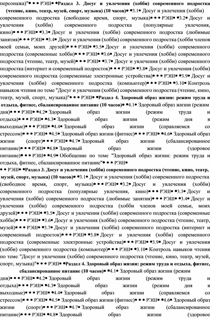 Раздел 3. Досуг и увлечения (хобби) современного подростка (чтение, кино, театр, музей, спорт, музыка) (10 часов) |