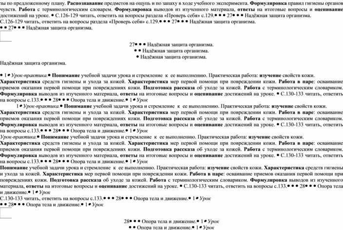 Понимание учебной задачи урока и стремление к ее выполнению. Анализировать рисунок учебника по предложенным заданиям и вопросам. Высказывание предположения (гипотезы) о том, почему почва плодородна, обосновывать их. Практическая работа: исследование состава почвы в ходе учебного эксперимента, использовать полученные данные для проверки выдвинутых гипотез. Анализ схемы связей почвы и растения; на основе схемы моделирование связи почвы и растений. Обсуждение вопроса о взаимосвязи живого и неживого в почве. Характеристика процессов образования и разрушения почвы; характеристика мер по охране почвы от разрушения (на основе материала учебника о деятельности В.В.Докучаева). Обсуждение рассказа «Уважайте жизнь дождевого червя» из книги «Великан на поляне». Формулирование выводов из изученного материала, ответы на итоговые вопросы и оценивание достижений на уроке. |