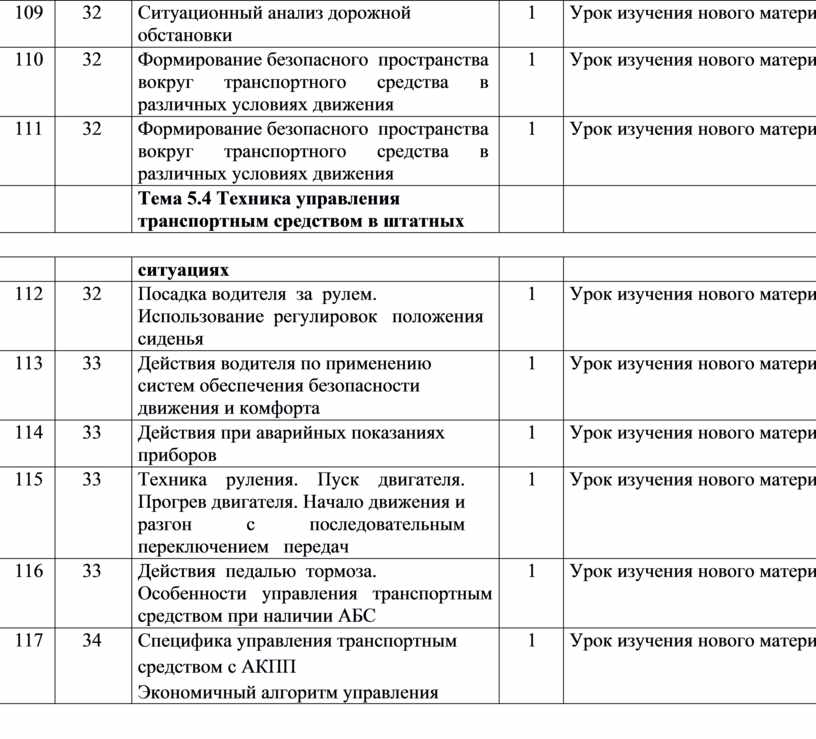 Тема 5.4 Техника управления транспортным средством в штатных |