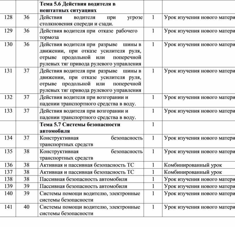 Тема 5.6 Действия водителя в нештатных ситуациях |