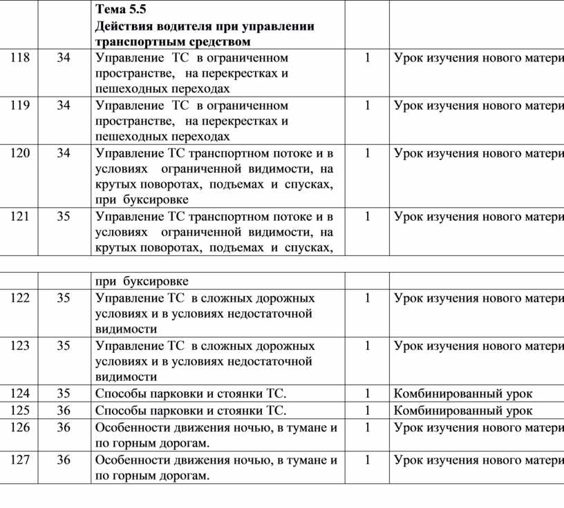 Тема 5.5 Действия водителя при управлении транспортным средством |