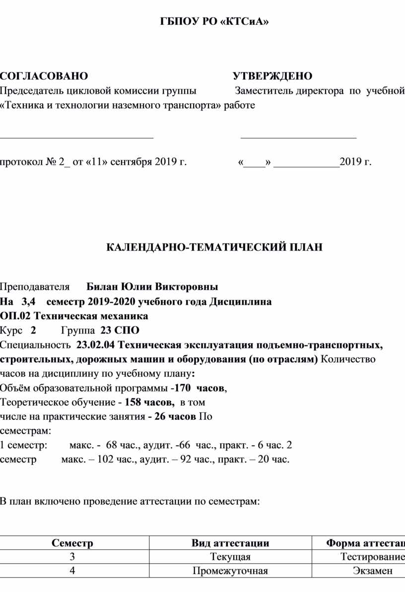 На 3,4 семестр 2019-2020 учебного года Дисциплина ОП.02 Техническая механика