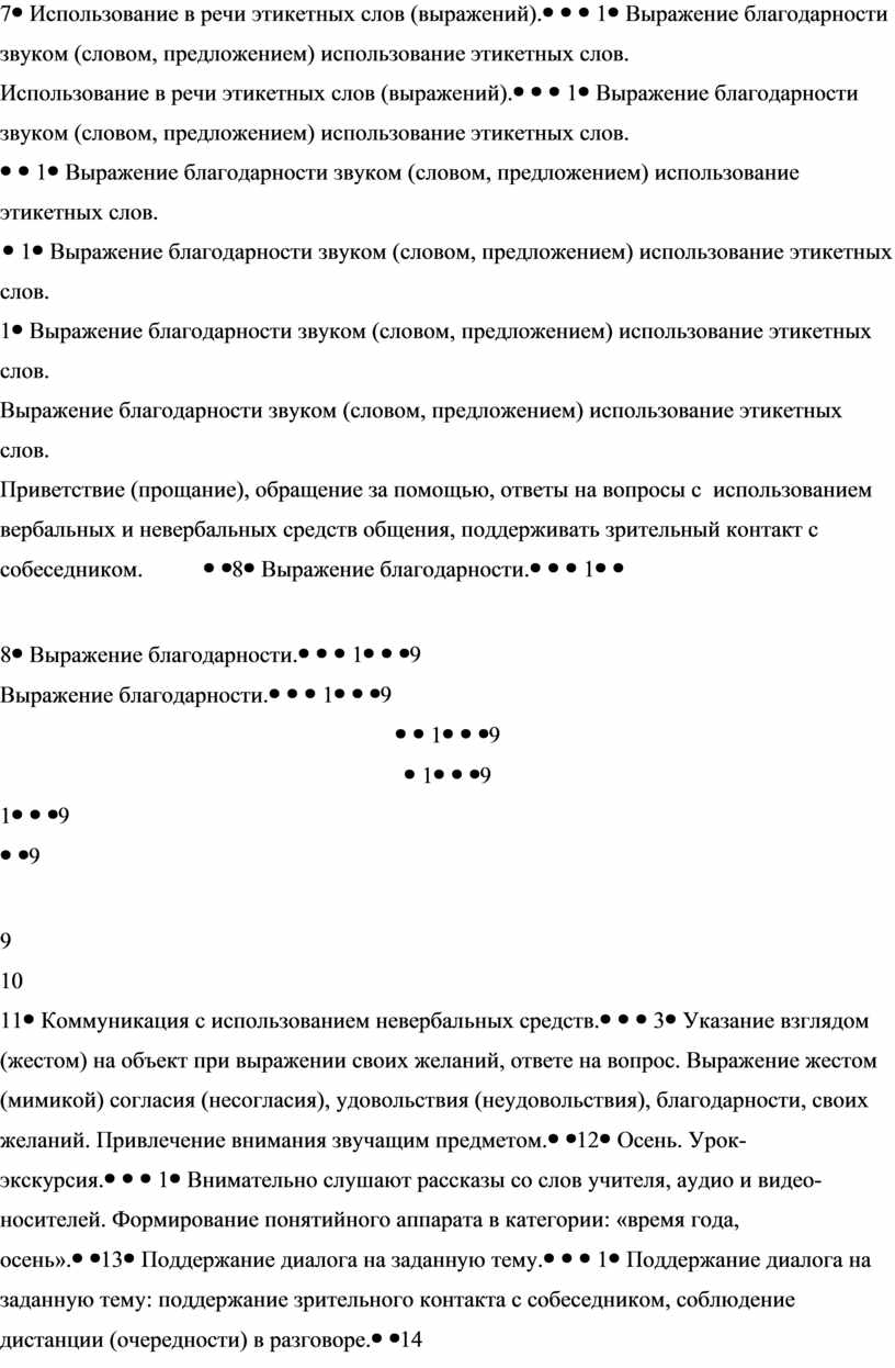 Выражение благодарности звуком (словом, предложением) использование этикетных слов. Приветствие (прощание), обращение за помощью, ответы на вопросы с использованием вербальных и невербальных средств общения, поддерживать зрительный контакт с собеседником. |