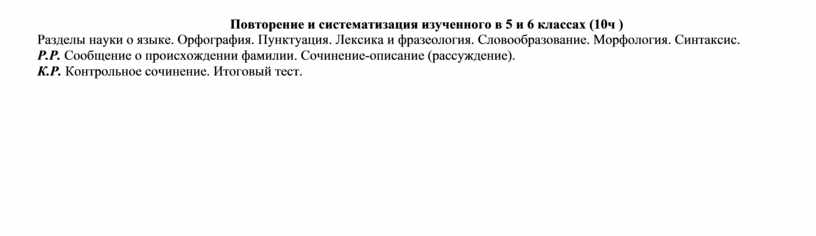 В программе предусмотрены вводные уроки, раскрывающие роль и значение русского языка в нашей стране и за ее пределами. Программа рассчитана на прочное усвоение материала, для чего значительное место в ней отводится повторению. Для этого в начале и в конце года выделяются специальные часы. В 6 классе необходимо уделять внимание преемственности между начальным и средним звеном обучения. Решению этого вопроса посвящен раздел «Повторение изученного в 5 классе». Для организации систематического повторения, проведения различных видов разбора подобраны примеры из художественной литературы.