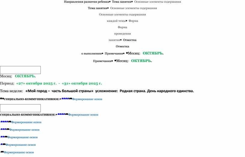 Месяц: ОКТЯБРЬ. Период: «27» октября 2025 г. - «31» октября 2025 г. Тема недели: «Мой город – часть большой страны» усложнение: Родная страна. День народного единства.