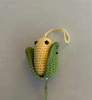 Затем набиваем кукурузу наполнителем и завершаем вязание.