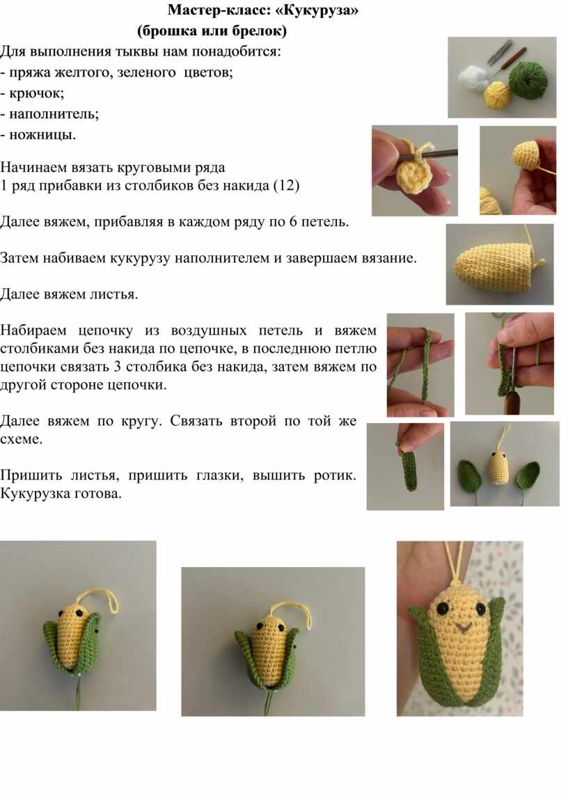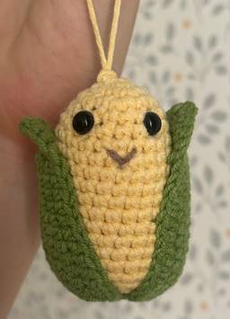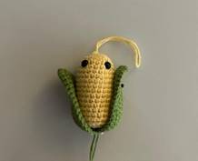 Пришить листья, пришить глазки, вышить ротик. Кукурузка готова.
