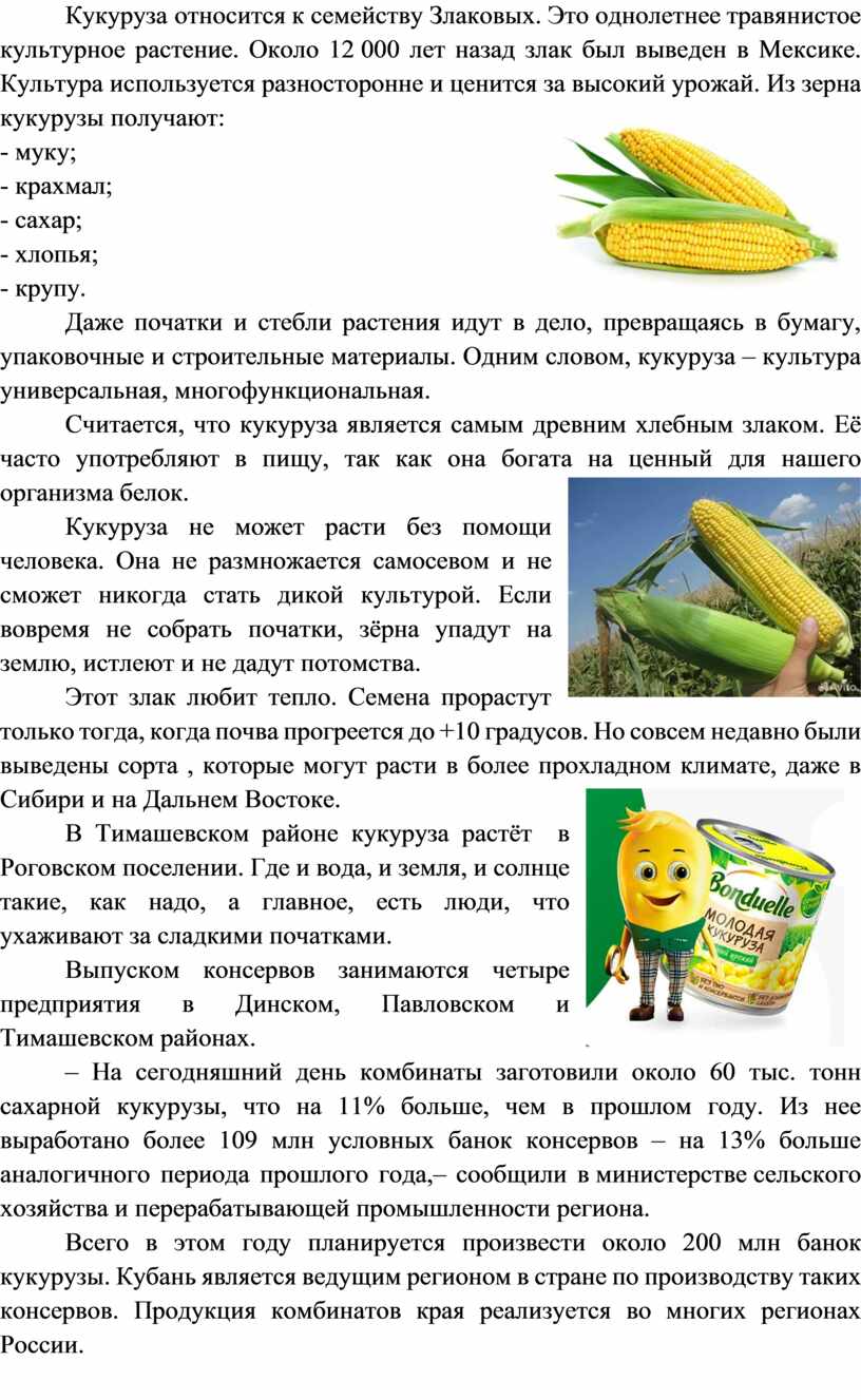 что кукуруза является самым древним хлебным злаком. Её часто употребляют в