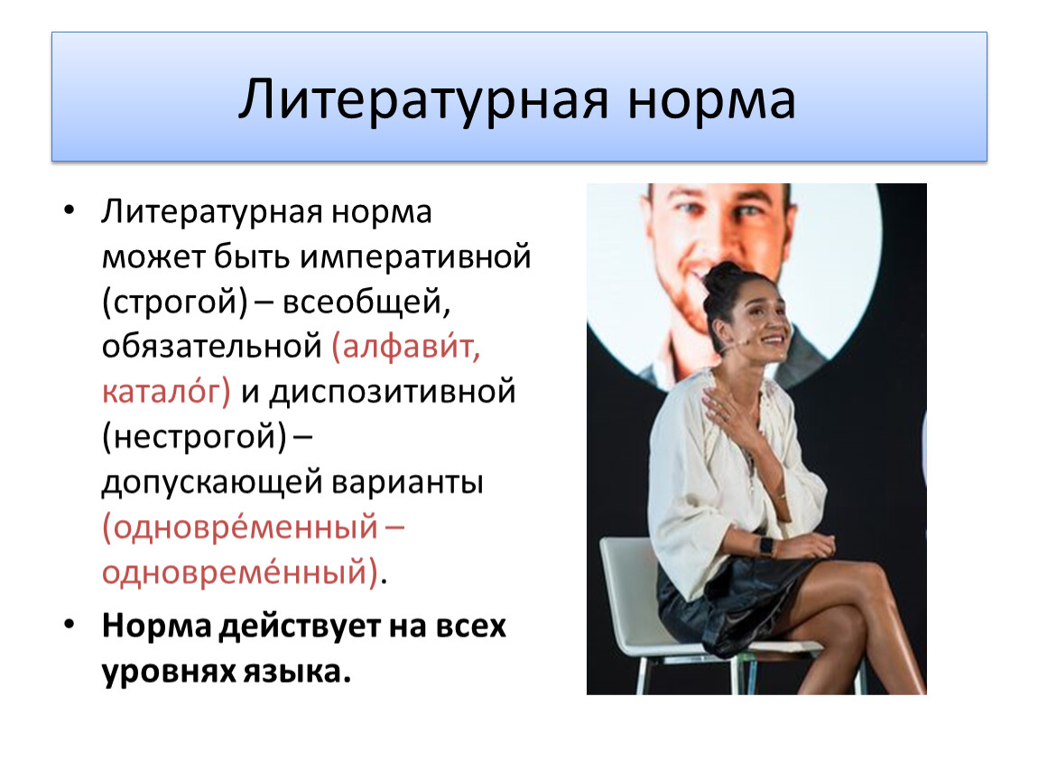Норма действует на всех уровнях языка.