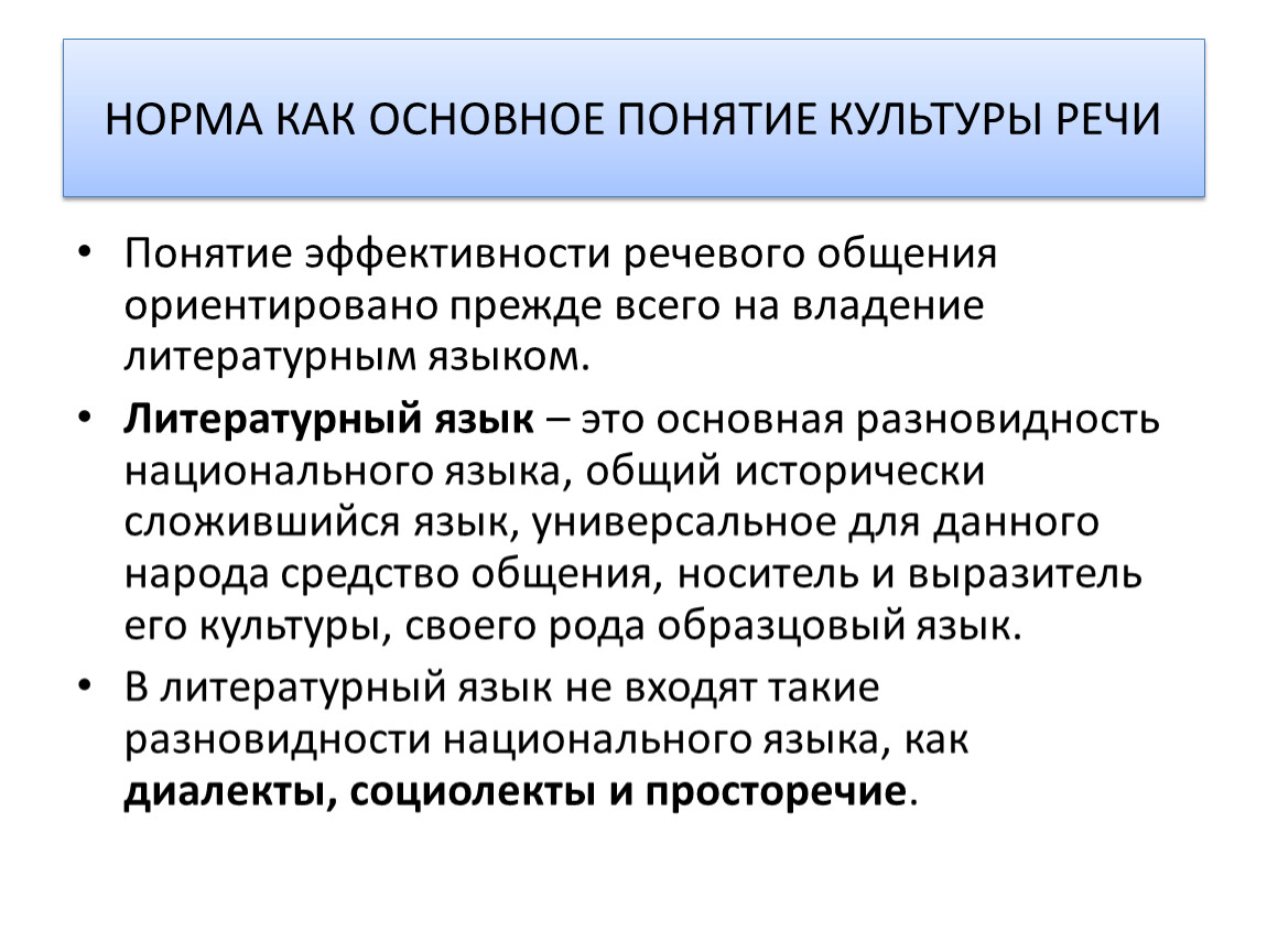 Понятие эффективности речевого общения ориентировано прежде всего на владение литературным языком.