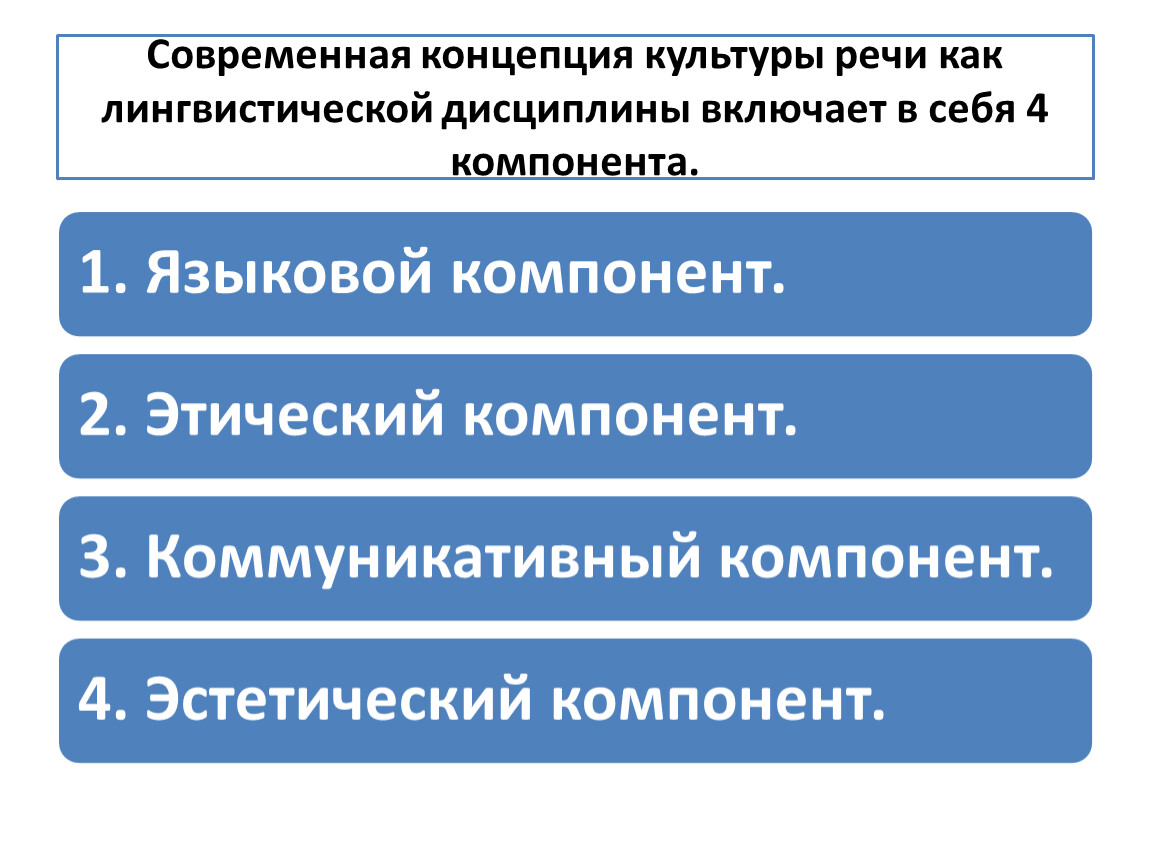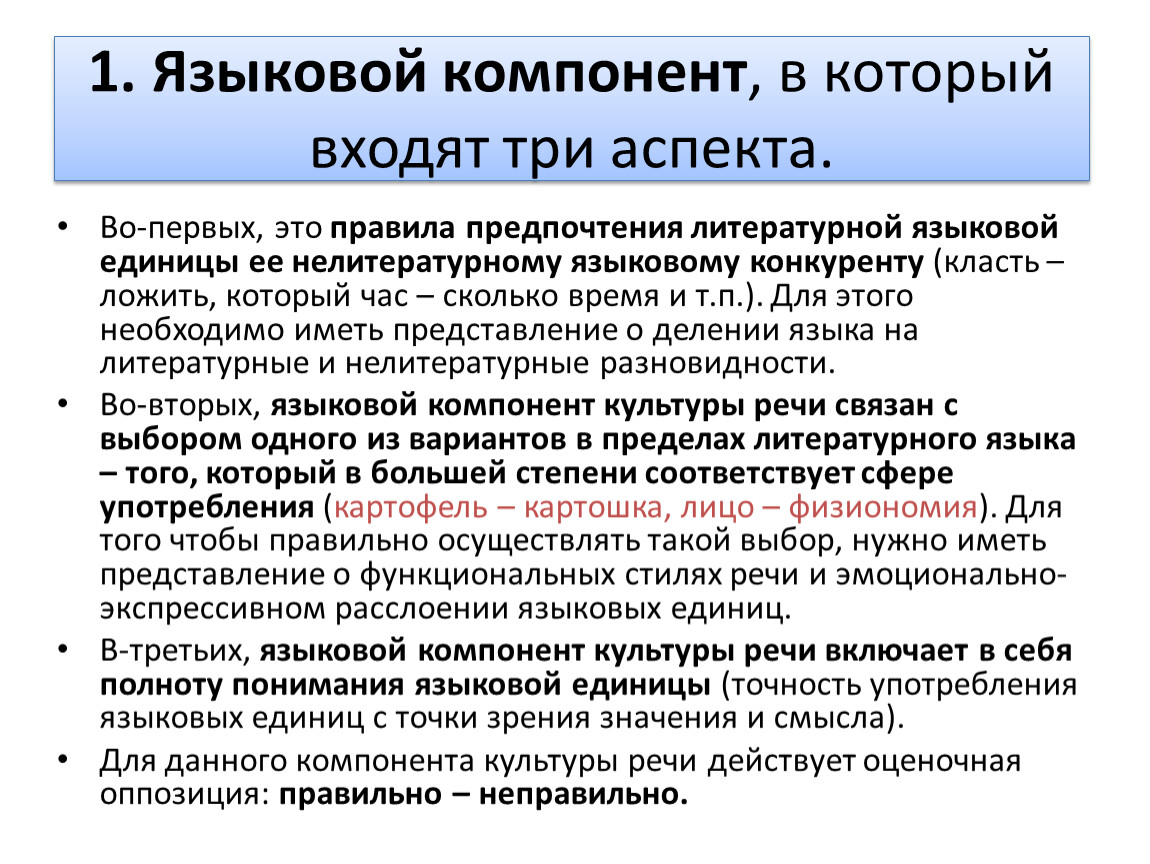 1. Языковой компонент, в который входят три аспекта.