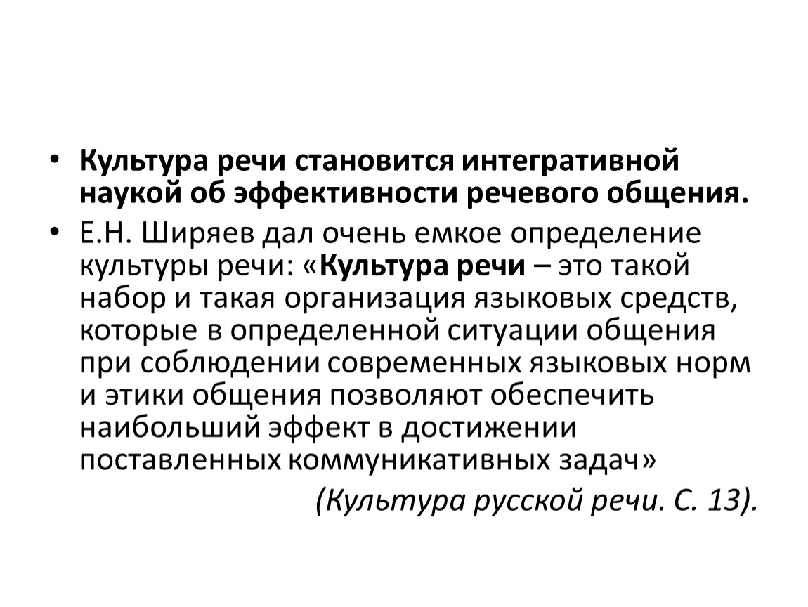 Культура речи становится интегративной наукой об эффективности речевого общения.