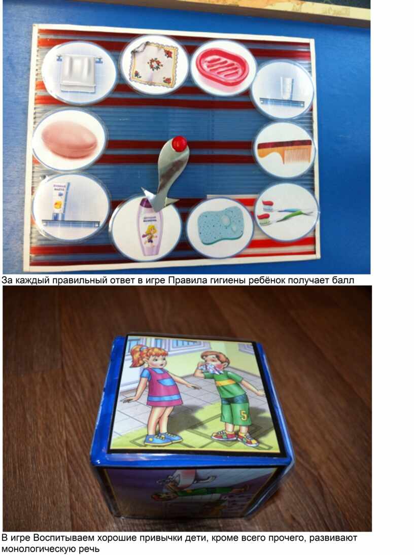 «Правила гигиены» (игровой барабан со стрелкой и картинками, иллюстрирующими средства гигиены). |