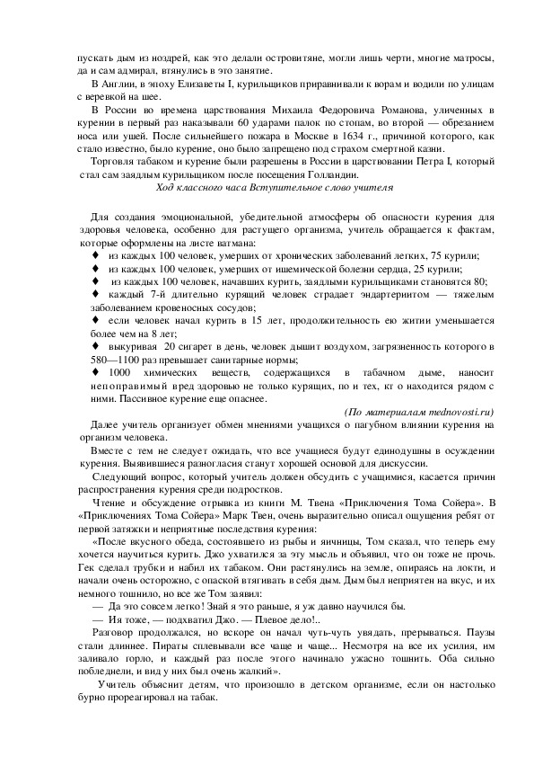 здоровья человека, особенно для растущего организма, учитель обращается к фактам,