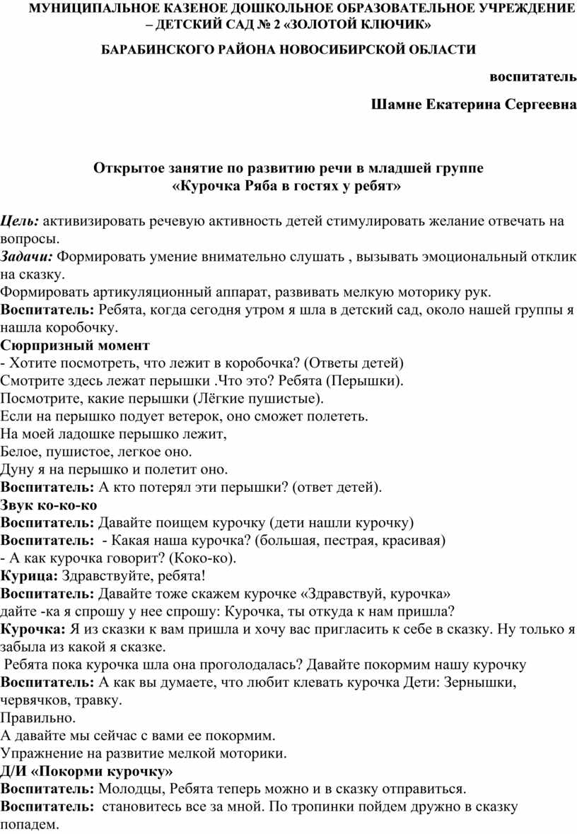 МУНИЦИПАЛЬНОЕ КАЗЕНОЕ ДОШКОЛЬНОЕ ОБРАЗОВАТЕЛЬНОЕ УЧРЕЖДЕНИЕ – ДЕТСКИЙ САД № 2 «ЗОЛОТОЙ КЛЮЧИК»