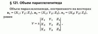 нахождения объема параллелепипеда, построенного на векторах, с координатами а=