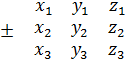 В курсе аналитической геометрии встречается понятие определителя третьего порядка. Алексей Константинович в своей книге[1] «Курс высшей математики» в § 9 «Инварианты кривых второго порядка» называл их таблицей. (Приложение 5). В современных учебниках определителем третьего порядка называется выражения, представляющие собой алгебраическую сумму шести произведений по 3 сомножителя.