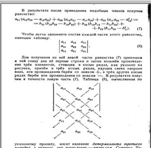 Копия страницы учебника по высшей математике, где Алексей Константинович описывает решение детерминанты третьего порядка