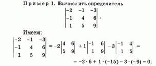 Пример вычисления определителя по правилу разложения элементов первой строки.