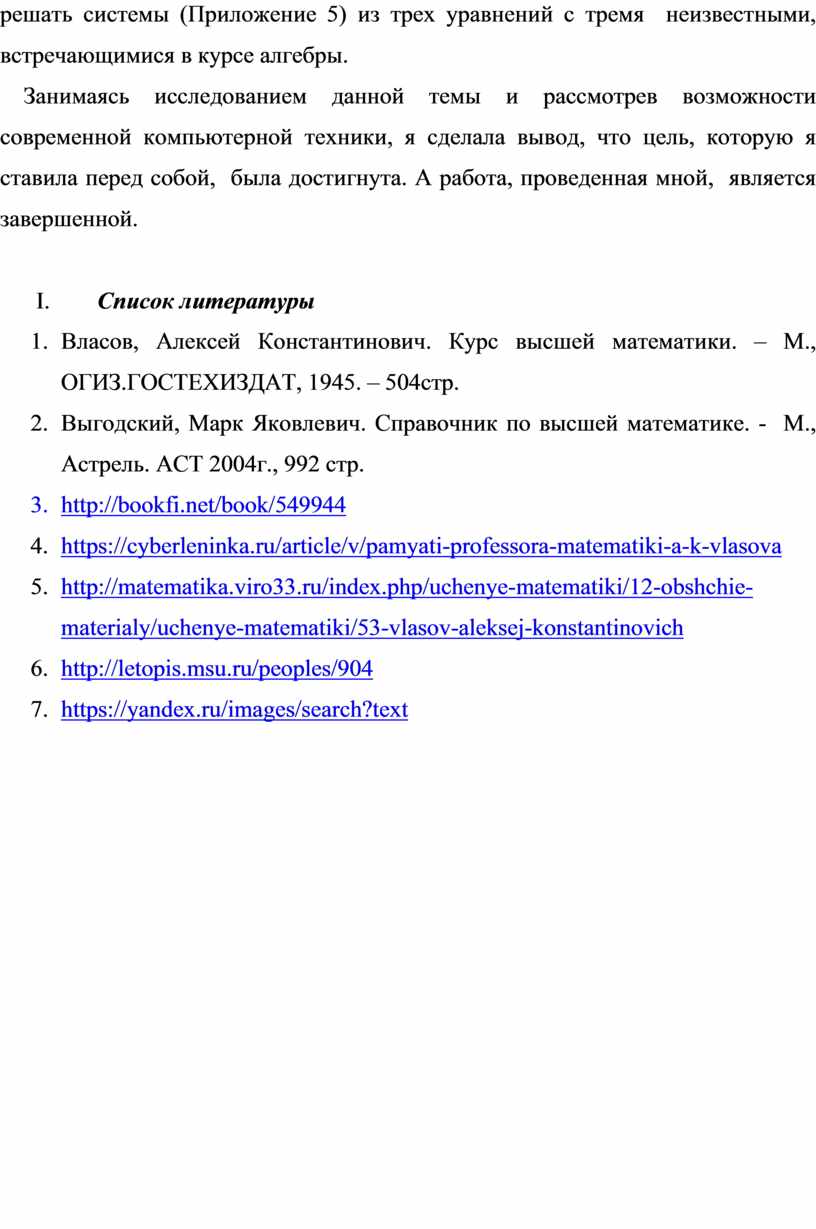 [1] Власов А.К «Курс высшей математики» Гостехиздат 1945 Т.1 стр. 156