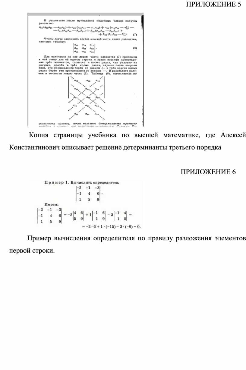 2 метод: разложением по элементам первой строки. Пример вычисления таким способом можно посмотреть в (Приложение 6).