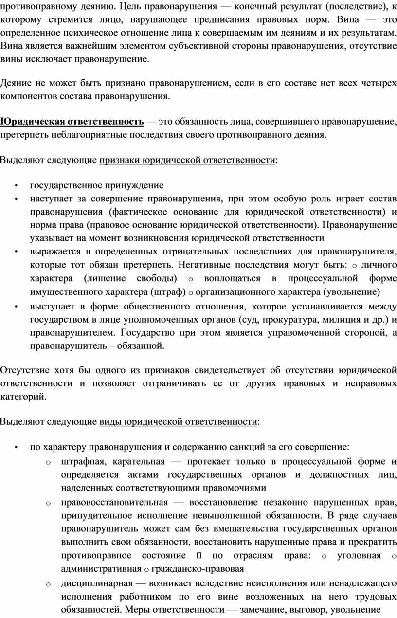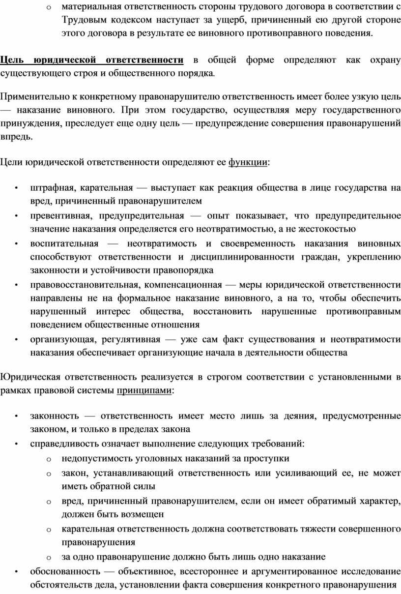 Применительно к конкретному правонарушителю ответственность имеет более узкую цель — наказание виновного. При этом государство, осуществляя меру государственного принуждения, преследует еще одну цель — предупреждение совершения правонарушений впредь.