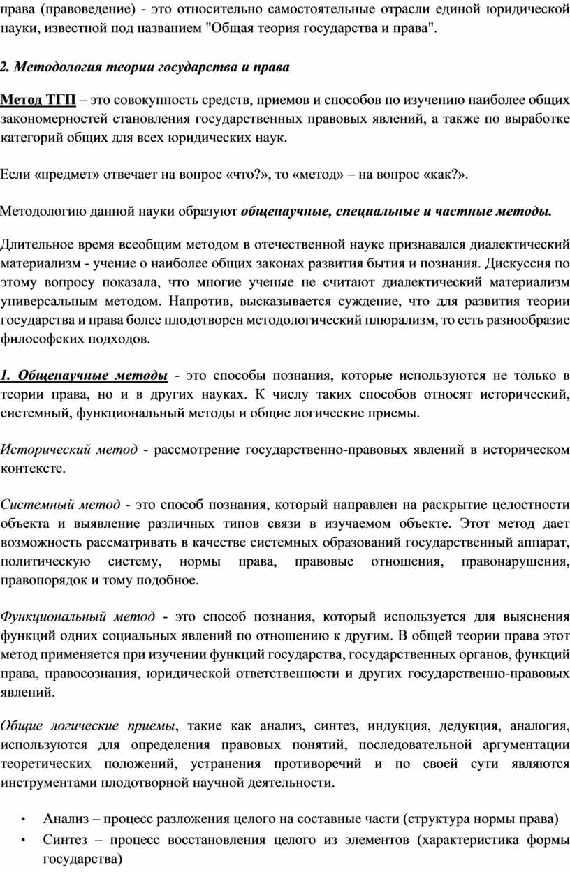 1. Общенаучные методы - это способы познания, которые используются не только в теории права, но и в других науках. К числу таких способов относят исторический, системный, функциональный методы и общие логические приемы.