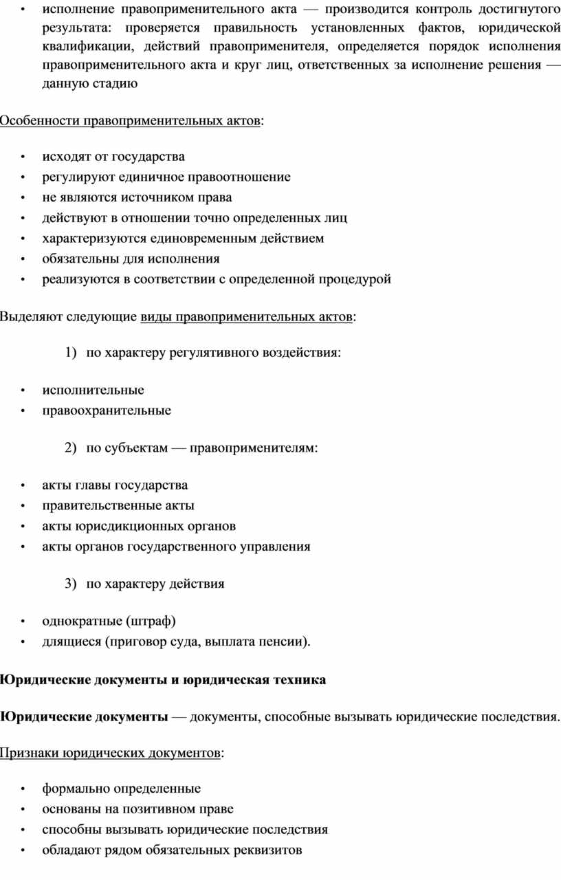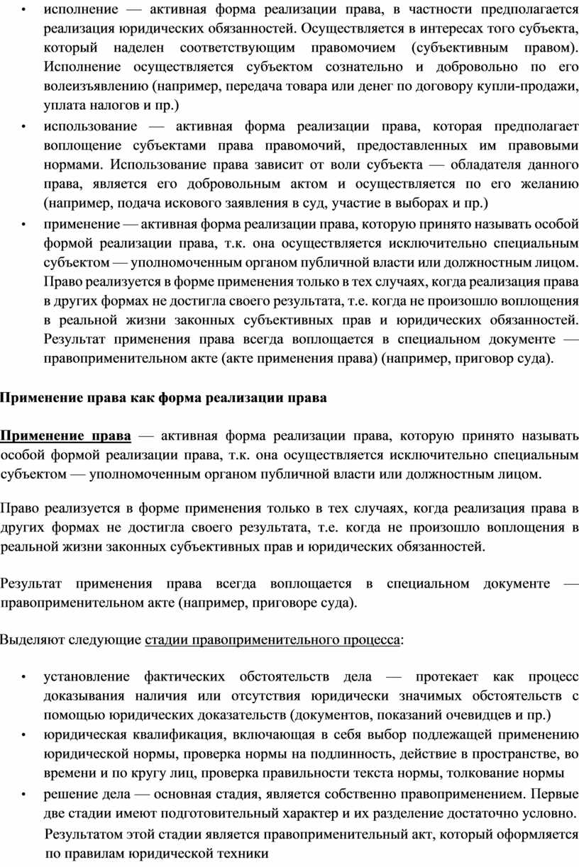 • юридическое содержание — система реализованных и согласованных субъективных прав и юридических обязанностей, т.е. результат установления законности.