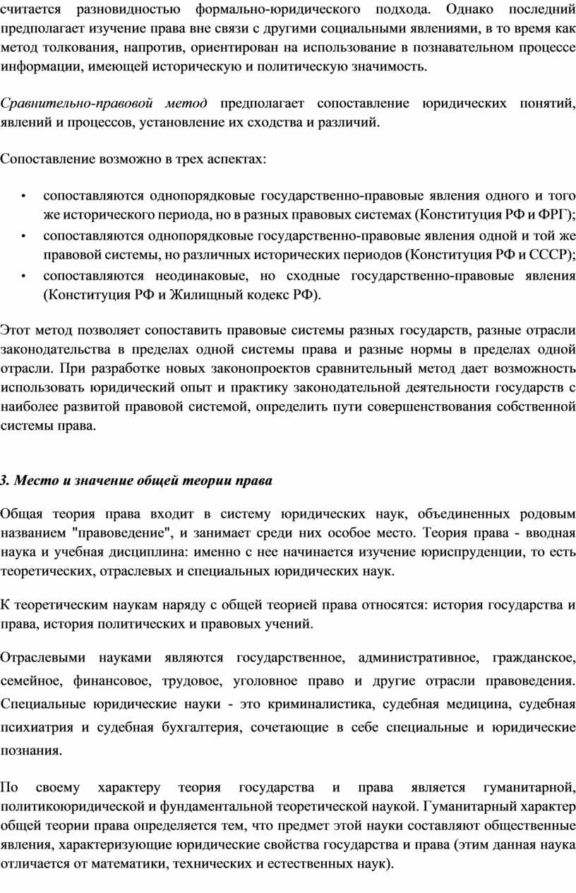 Общая теория права входит в систему юридических наук, объединенных родовым названием "правоведение", и занимает среди них особое место. Теория права - вводная наука и учебная дисциплина: именно с нее начинается изучение юриспруденции, то есть теоретических, отраслевых и специальных юридических наук.