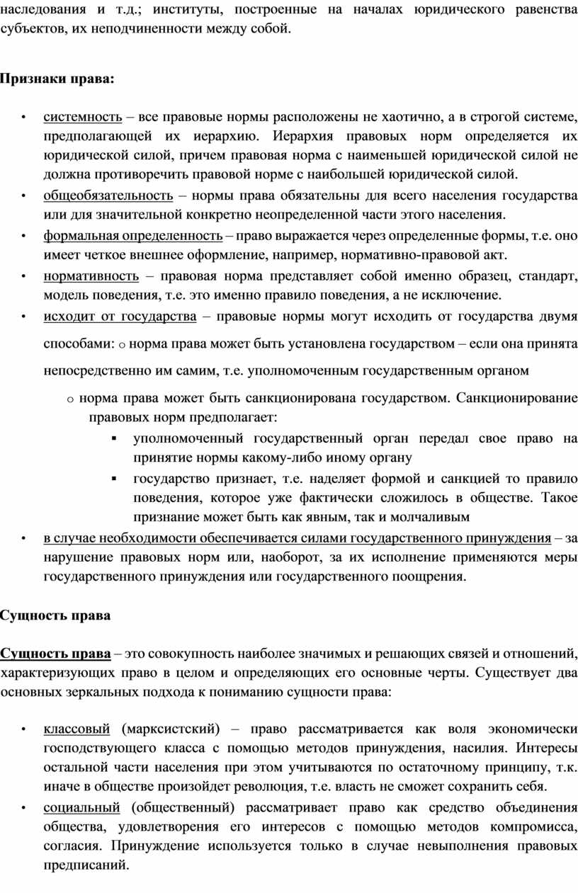 Сущность права – это совокупность наиболее значимых и решающих связей и отношений, характеризующих право в целом и определяющих его основные черты. Существует два основных зеркальных подхода к пониманию сущности права: