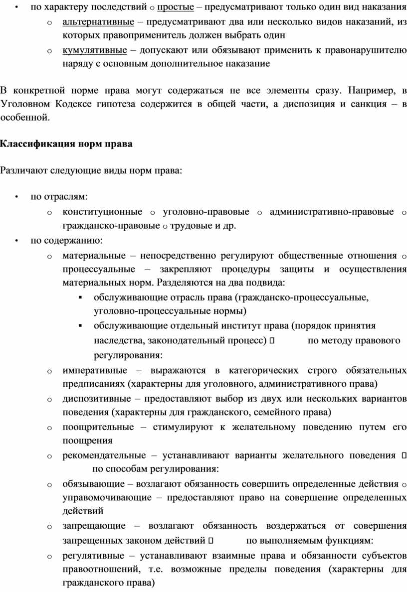 7) предмета правового регулирования: уголовно-правовые; гражданско-правовые и др.; 8) предоставления или ограничения прав: стимулирующие; ограничивающие.