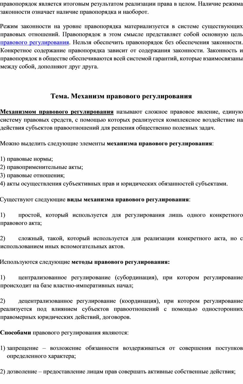 Механизмом правового регулирования называют сложное правовое явление, единую систему правовых средств, с помощью которых реализуется комплексное воздействие на действия субъектов правоотношений для решения общественно полезных задач.