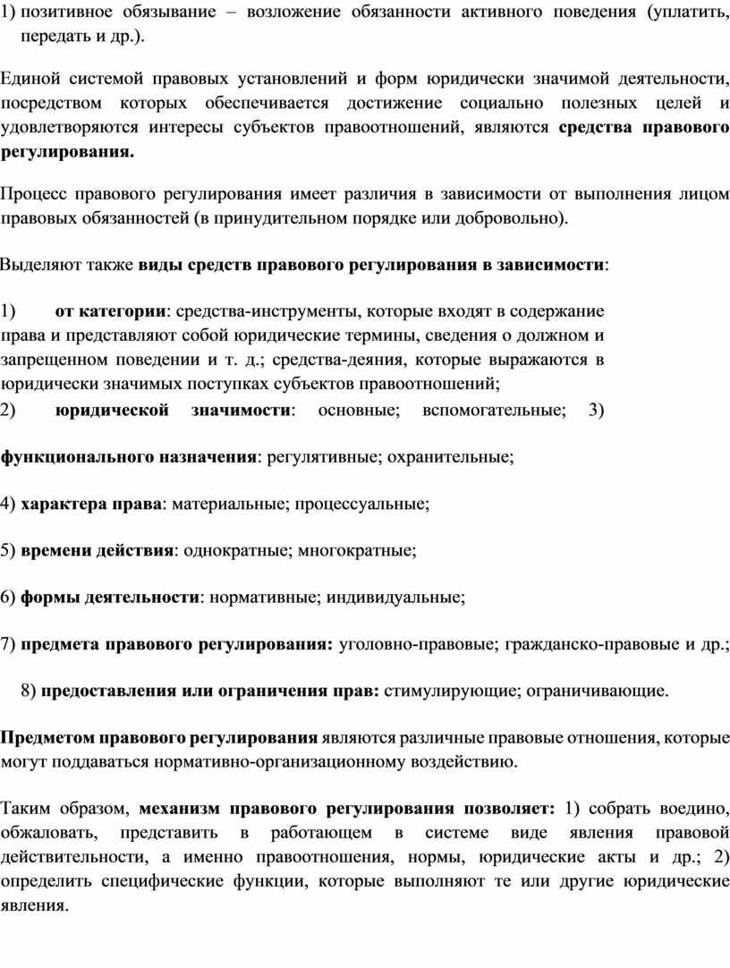 3) позитивное обязывание – возложение обязанности активного поведения (уплатить, передать и др.).