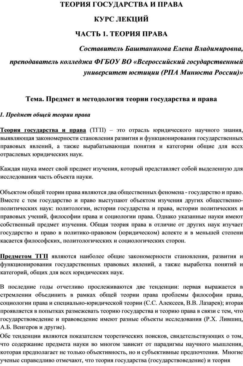 ТЕОРИЯ ГОСУДАРСТВА И ПРАВА