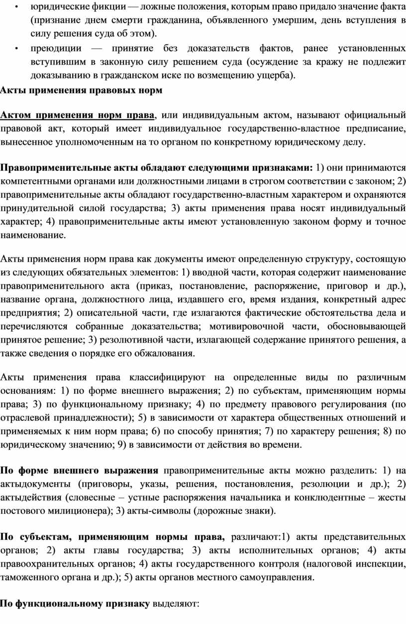 4) акты осуществления субъективных прав и юридических обязанностей субъектами.
